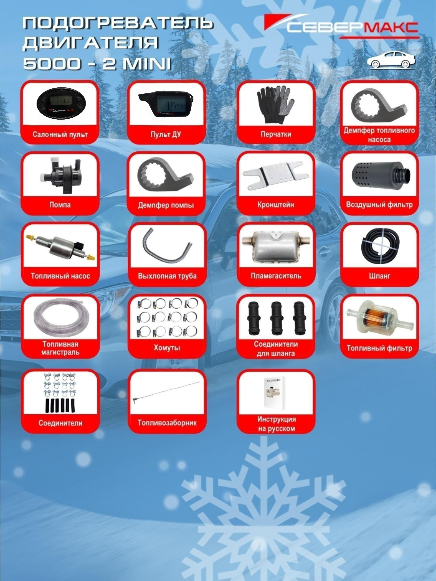 Автономный предпусковой подогреватель двигателя СЕВЕРМАКС 5000-2N, 12V бензин/дизель, с пультом